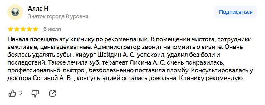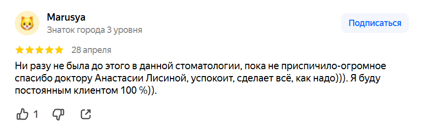 С огромной гордостью говорю о нашей команде: это врачи с бесценным опытом и золотыми руками. Мы создали не просто клинику, а уютное пространство, где царит атмосфера заботы и спокойствия. Наша клиника использует передовые технологии, которые выводят лечение и эстетику на новый уровень. Всё это позволяет нам оказывать услуги высокого качества, за что нам и доверяет каждый пациент.